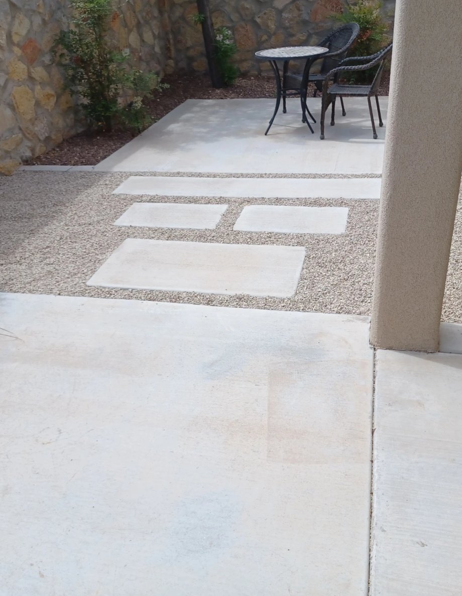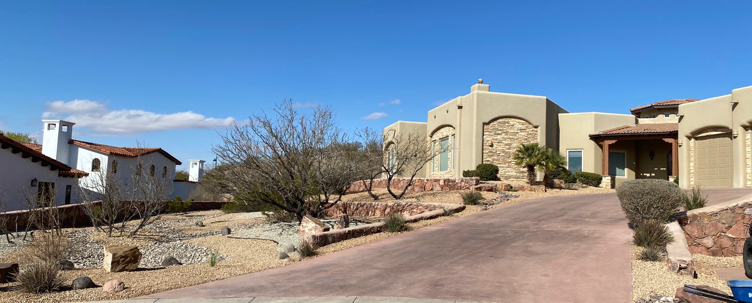 Three materials make sense for Las Cruces driveways. We don't install asphalt because the heat and UV destroy it here.