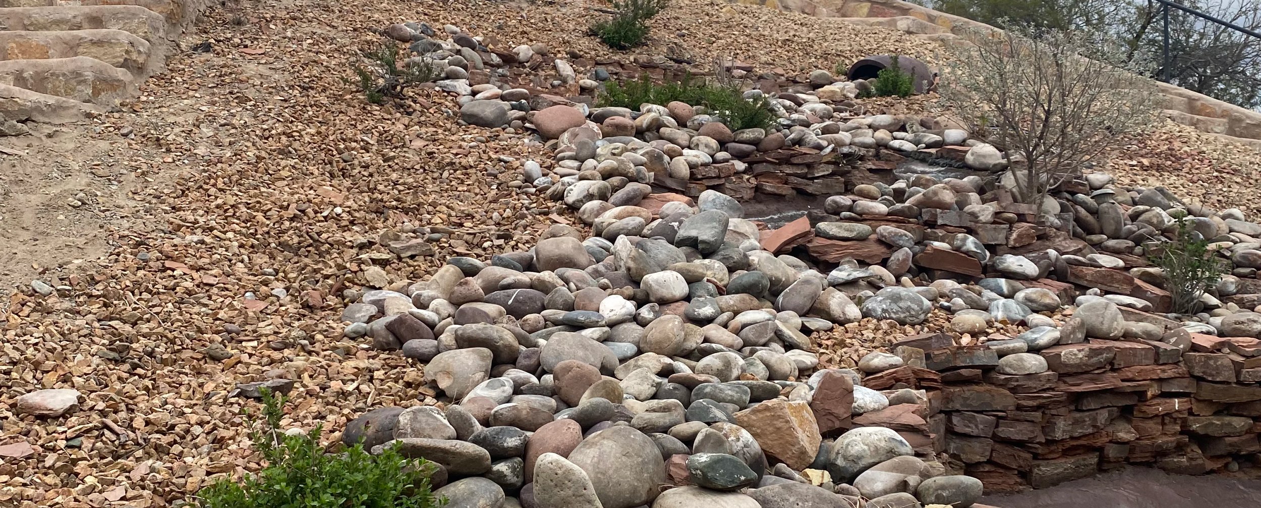 Subsurface drip: buried drip line for ground covers, ornamental grasses, and large xeriscape areas. Protected from UV degradation and invisible at the surface.