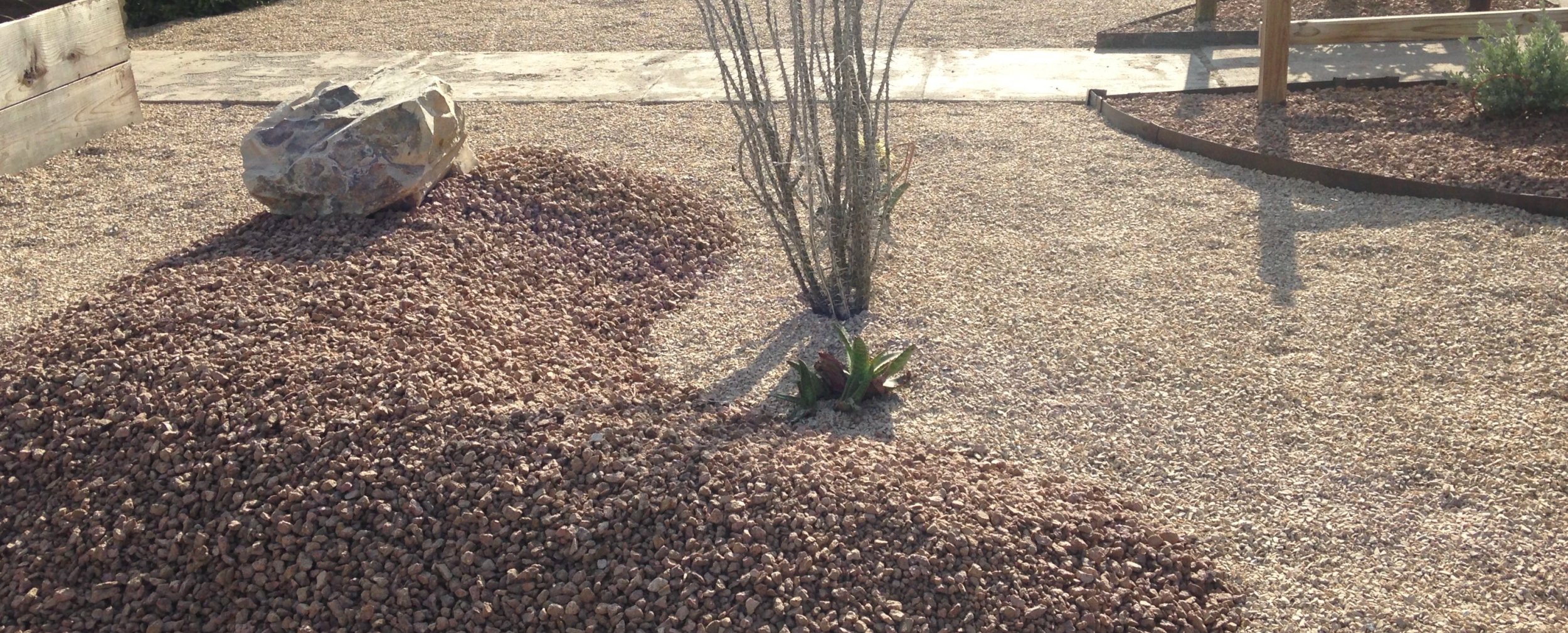 Decomposed granite (DG) packs down tighter and gives a cleaner, more finished look for paths and patios. Larger gravel is better for drainage swales, driveways, and open areas where you want fast water flow. We often use both on the same property, each in the right spot. DG costs a bit more per yard but holds up well in Doña Ana’s wind.